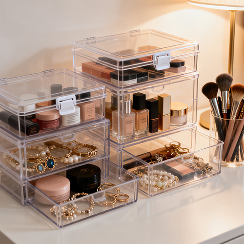 Bellezza e cura della pelle: la scatola trasparente per PC viene utilizzata per posizionare rossetto, ombretto e pennello per il trucco. Può essere progettato con una struttura a cassetti multistrato. Lo strato superiore viene utilizzato per posizionare le forniture regolari e lo strato inferiore viene utilizzato per immagazzinare le merci; La piccola scatola portaoggetti con divisorio viene utilizzata per organizzare oggetti lunghi e sottili come il nero per gli occhi e la penna per eyeliner per evitare disordine.
